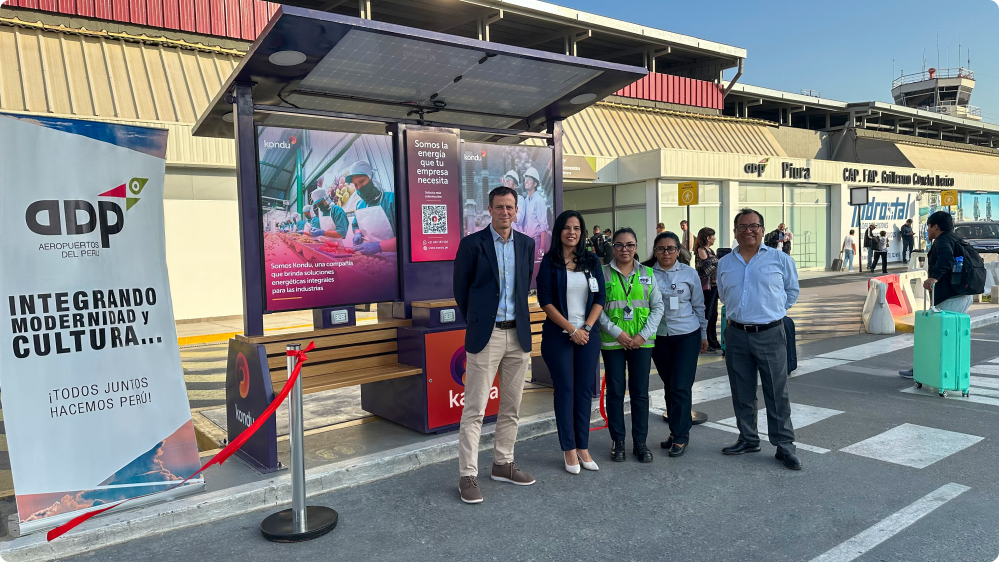 Gracias a alianza entre la empresa eléctrica Kondu y Aeropuertos del Perú (AdP), se instaló una banca solar para que los pasajeros puedan cargar sus dispositivos electrónicos en el Aeropuerto de Piura.